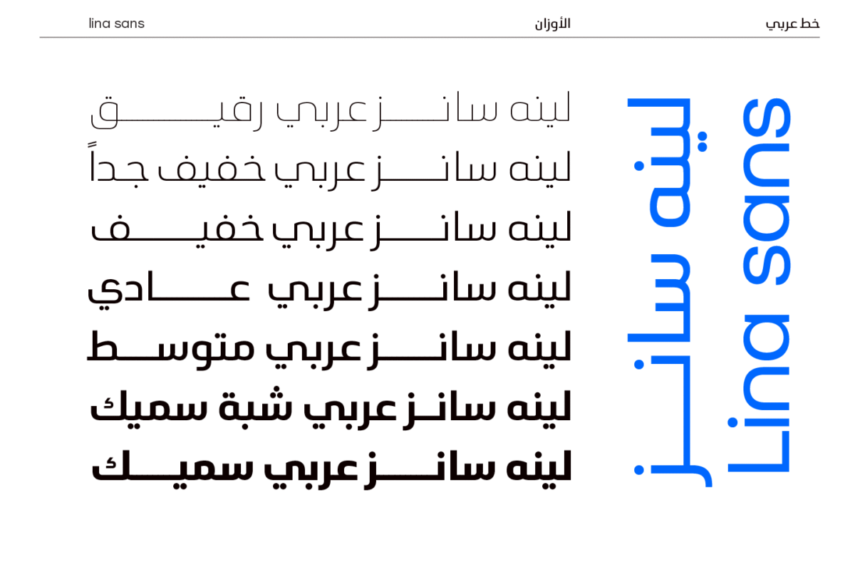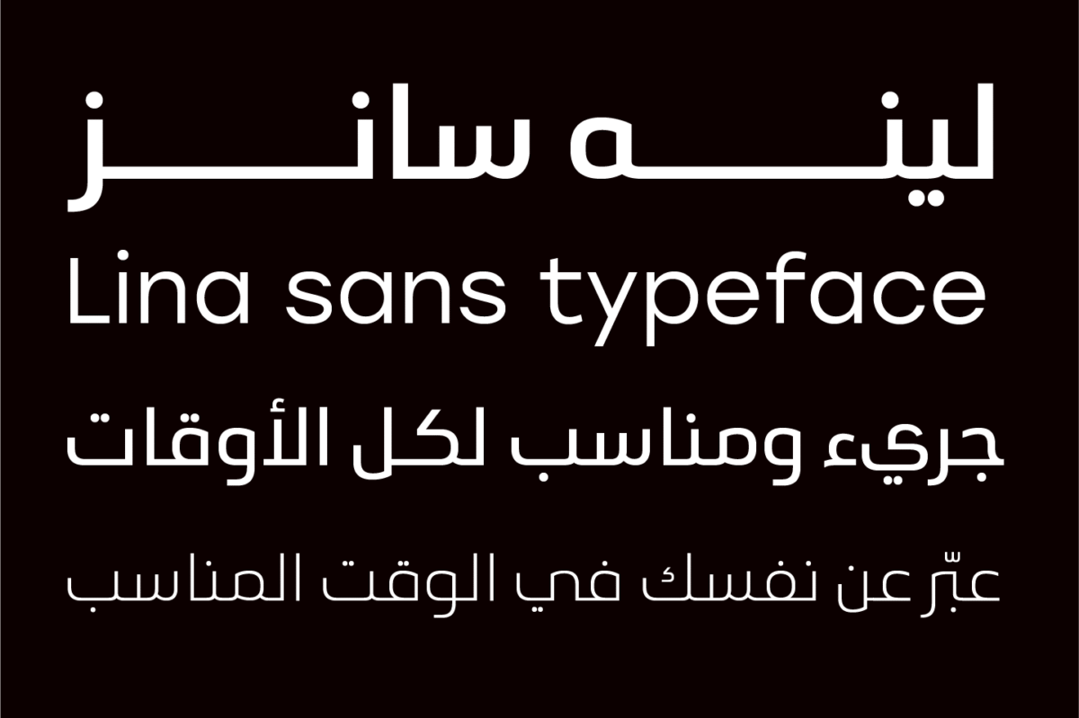 Lina sans is an Arabic typeface from Lina type family, that expresses modern vigor based on simplicity and clarity.