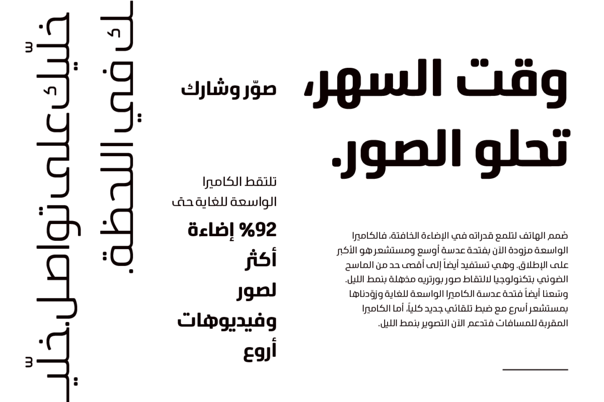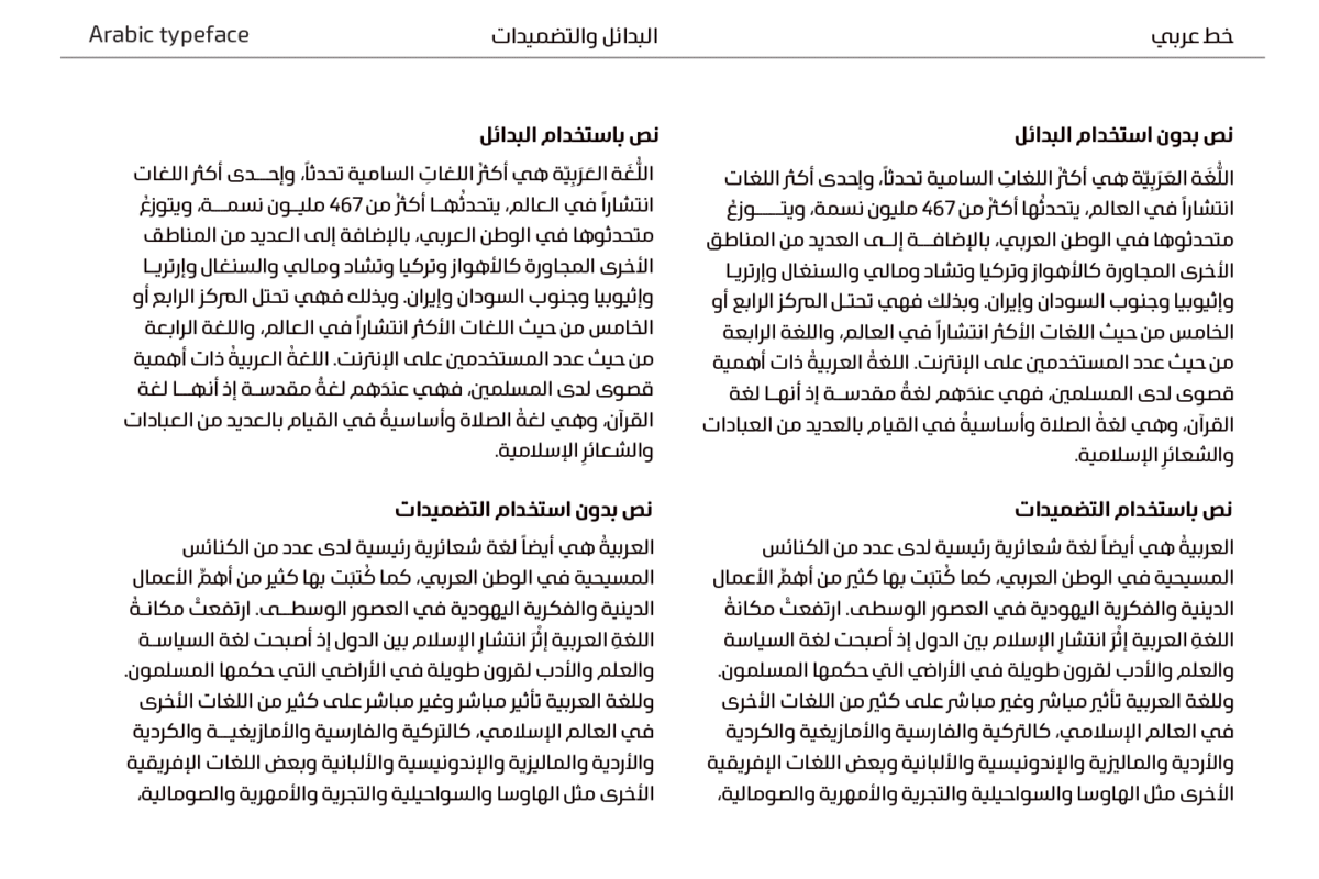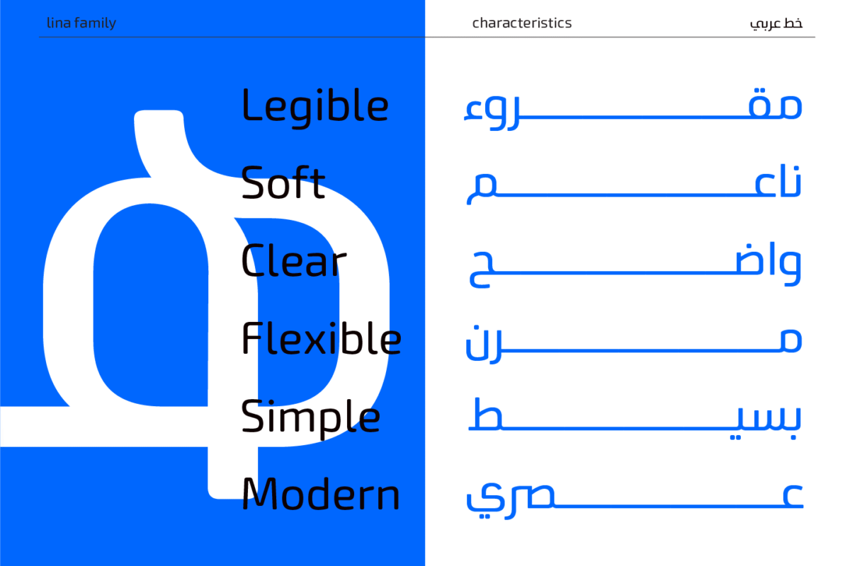 Lina Soft is an Arabic typeface from Lina-type family, with a warm and humane feeling. It’s legible, soft, clear, flexible, simple, and contemporary. With a handful set of OpenType features and alternatives. Lina type family consists of Lina soft, Lina sans, Lina round.